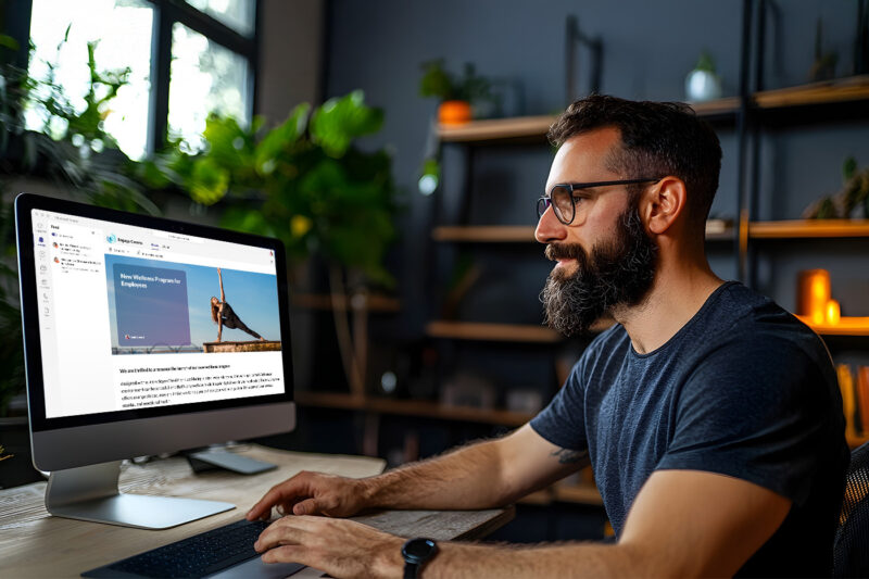 - Krótkie posty od liderów w ramach firmowej sieci społeczności