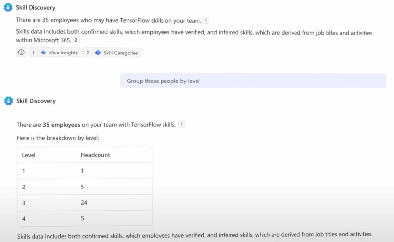 I jeszcze coś nieco bardziej kontrowersyjnego – People Skills Agent. Jego celem jest ułatwienie wyszukiwania osób w organizacji, które posiadają umiejętności, których poszukujemy. Ale także budowanie taksonomii tych umiejętności na podstawie użycia tych umiejętności w pracy 👀✅❌